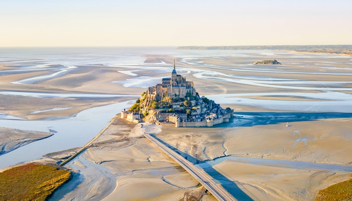 Mont Saint-Michel er et middelalderkloster, der ligger på en klippeø i Normandiet i Frankrig. Klosteret, der er kendt for sit arkitektoniske vidunder, rejser sig dramatisk op af bugten ved højvande og danner en betagende silhuet mod horisonten. Den blev opført i det 8. århundrede og fungerede både som valfartssted og fæstning. Klosterets indviklede gotiske spir, solide forsvarsvægge og den charmerende landsby ved foden gør det til et sted på UNESCO verdensarvslisten og et symbol på Frankrigs rige historie. Besøgende bliver betaget af stedets unikke blanding af naturlig skønhed og menneskelig opfindsomhed, hvilket gør det til en destination, man ikke må gå glip af.