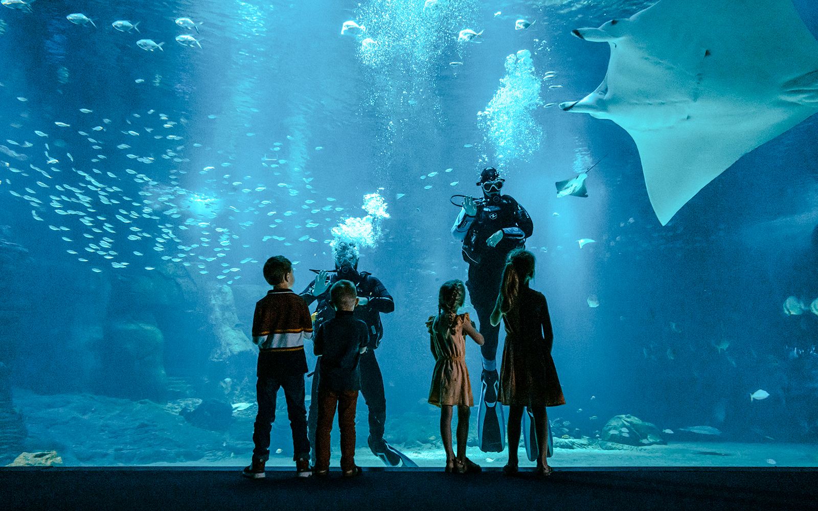 Watch divers descend into the vast Diamond Tank to interact with sharks, rays, and schools of fish, giving you a closer look at life beneath the surface.