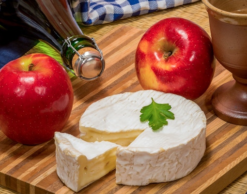 Provsmaka ostar från Normandie, saltkarameller och äppelbrandy i byns delikatessbutiker.