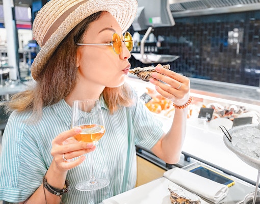 Ät middag med panoramautsikt över ön och bukten, där du kan njuta av färska skaldjur och regionala specialiteter i en modern matsal.