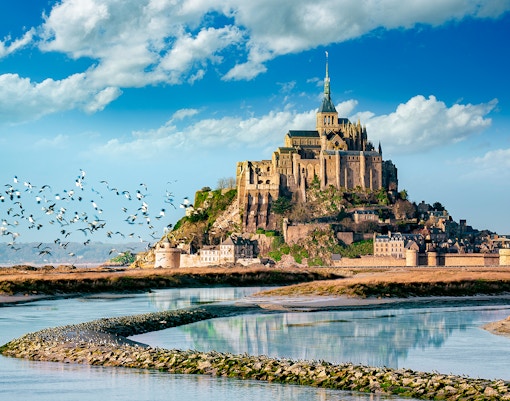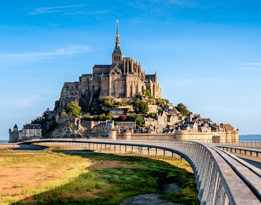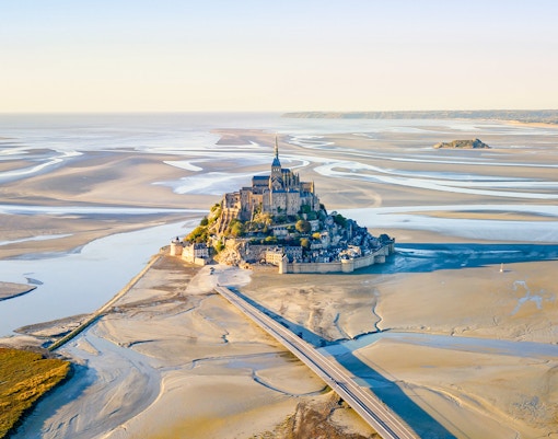 Mont Saint-Michel, beläget vid Normandiekusten, är en ökommun som finns med på UNESCOs världsarvslista och är känd för sitt medeltida kloster och sina dramatiska tidvatten. I närheten av Mont Saint-Michel hittar du historiska byar, vackra promenader längs bukten och lokala museer, allt inom 20 minuters bilresa. Tack vare sitt unika läge är det en perfekt utgångspunkt för att utforska Normandies kust, njuta av Regional mat och enkelt upptäcka århundraden av historia.