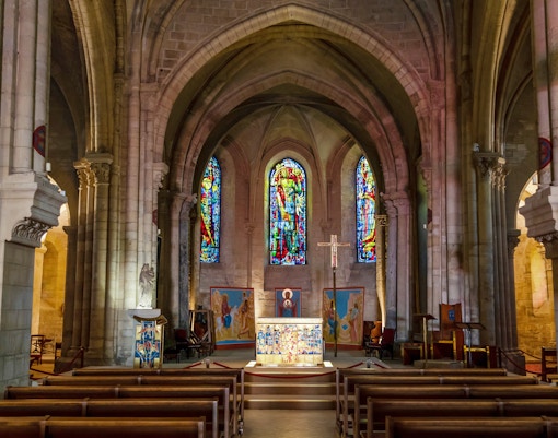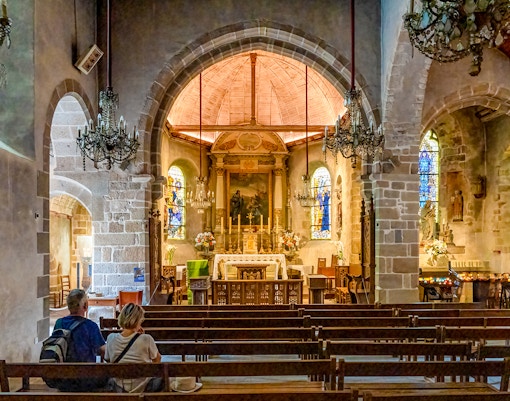 Denna lilla kyrka högst upp i byn är fridfull och ofta förbisedd, med enkla Glasmålningar och en lugn atmosfär.